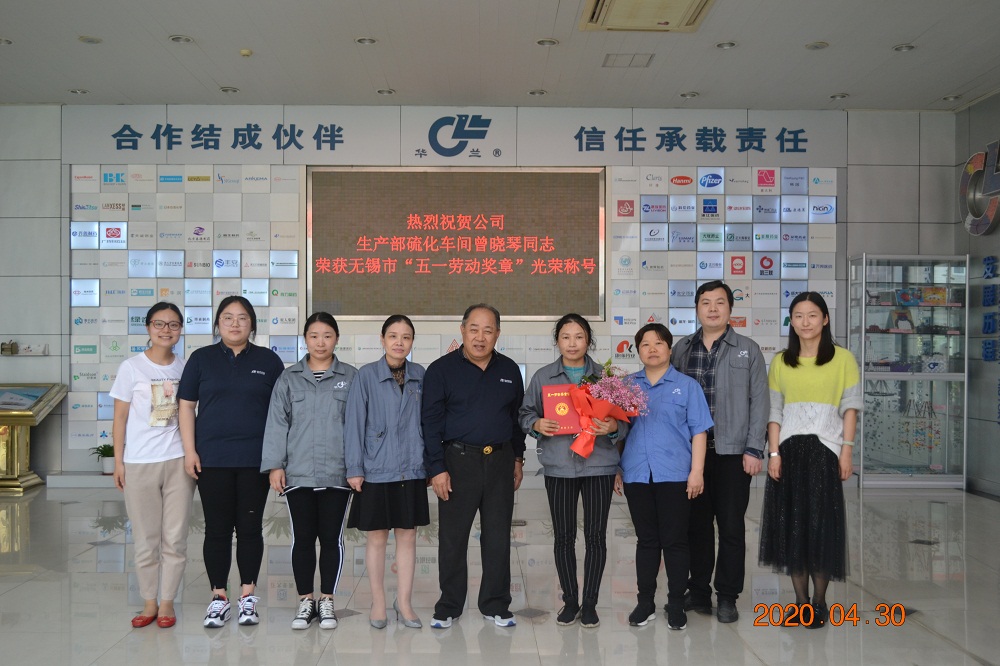 2020年4月30日,在無錫市總工會(huì)召開的“五一勞動(dòng)獎(jiǎng)?wù)隆北碚么髸?huì)上,公司生產(chǎn)部硫化車間曾曉琴同志榮獲無錫市“五一勞動(dòng)獎(jiǎng)?wù)隆惫鈽s稱號(hào)。