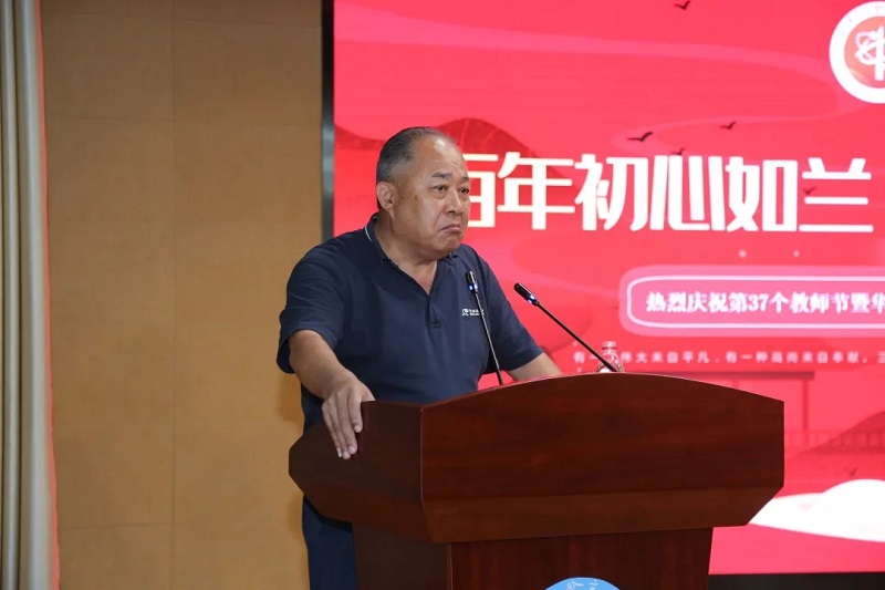 接著華國平董事長上臺,先深深鞠了一躬,表達對一線教師的敬重和感謝。感謝所有在教育的天地里默默守望的老師們。在講話中尤其是對奮戰(zhàn)在班主任崗位上的老師們由衷的敬意,表達了對老師們最誠摯的祝福。接著他鼓勵大家做一名有家國情懷的人民教師。企業(yè)需要不斷優(yōu)化產業(yè),增強競爭力,教育更需要每一位教育工作者勤于思考,提高課堂效率,因材施教,提升學校辦學品質。華國平先生的發(fā)言誠摯而充滿了力量,贏得了領導、老師們熱烈的掌聲。